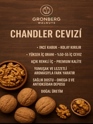 İnce kabuğu sayesinde kolay kırılan, içi dolgun ve açık renkli premium Chandler cevizleri ile tanışın.
